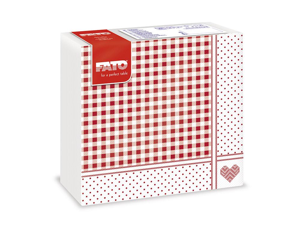 dekoračné servítky FATO s červenou potlačou. Servítky sú balené po 40ks s rozmerom 38x38cm, 2vrstvové. Kartón obsahuje 24 balení.