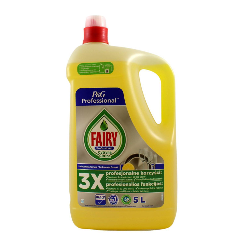 FAIRY Professional prostriedok na riad - citrón 5L Prostriedok na ručné umývanie riadu FAIRY Professional Citron je vhodný na všetky druhy riadu od nerezu až po porcelán. Má vynikajúci odmasťovací účinok a efektívne odstraňuje zvyšky potravín z hrncov, panvíc, príborov, tanierov a ostatného kuchynského vybavenia. S príjemnou vôňou citrónu. V ekonomickom 5l balení. Použitie: Ručné umývanie riadu Cena za 1ks/5L