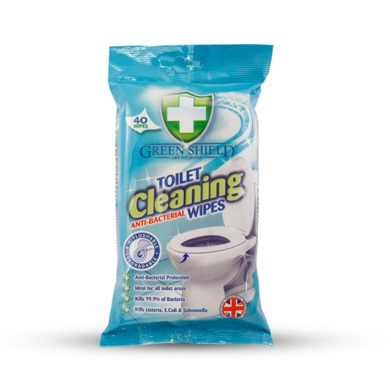 GREEN SHIELD čistiace utierky na čistenie toalety 40 ks Vlhčené utierky vhodné pre čistenie smaltovaných a umelohmotných povrchov Udržia vašu toaletu dokonale čistú jednoducho a rýchlo Utierky môžete po čistení pohodlne vhodiť do toalety a spláchnuť Utierky pre dokonalejšiu hygienu obsahujú antibacteriálnu prísadu Odstraňujú 99,9 % baktérií Balenie obsahuje 40 ks.