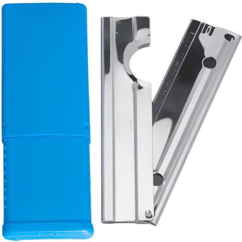 LEWI Škrabka čepeľ TRIM 1+10 komplet Trim 1+10 - Dvojdielny držiak (lišta na čepeľ, otočný kryt) + 10 obojstranných čepieľok. Držiak je tiež nasaditeľný na držiak stierky (grif). Prakticky najjednoduchšia škrabka. Čepeľ 10 cm. Všetky škrabky disponujú vymeniteľnými čepieľkami! , Cena za škrabku a 10 čepieľok v púzdre.