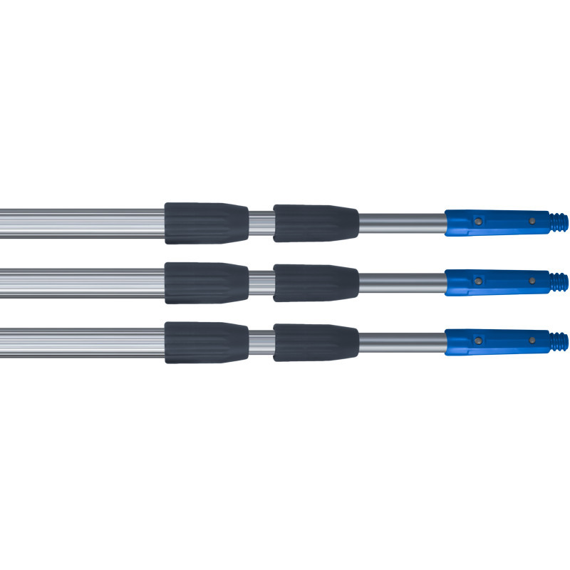 LEWI Teleskopická tyč 3x150cm Kvalitná hliníková teleskopická tyč nízkej váhy ideálna na čistenie, umývanie aj ďalšie práce vo výškach! Dvoj až štvorsekčná teleskopická tyč je zložená z vnútornej hladkej hliníkovej sekcie(í) a vonkajšej hliníkovej, proti preklzu pozdĺžne vrúbkovanej rúrky. Vnútorná sekcia má na spodnej časti segment, ktorý bráni pretáčaniu. Každá vonkajšia rúrka je voči rúrke vnútorná uzatváraná objímkou s jemným závitom, ktorá zaisťuje dokonalú blokáciu. Pri práci s teleskopom je teda možné vyvinúť silný tlak bez toho, aby došlo k nežiaducemu posunu pracovných pomôcok. Tyč je ukončená kónusom s čapom umožňujúcim pevné spojenie tyče a používané pracovné pomôcky. Výber tyče: Pri výbere tyče je treba brať do úvahy: Maximálny dosah (počítať tiež s tým, že človek drží tyč 120-160 cm nad zemou). Uhol pod ktorým budete pracovať a nástroje, ktoré budete používať (tlak aký budete na tyč potrebovať vyvinúť) Čím viac tlaku a čím horší uhol, tým horšia stabilita pri maximálnom vysunutí všetkých sekcií. Pri modelovej situácii komplikovaného čistenia do 4m výšky odporúčame teda skôr teleskop 3x2m, než 2x2m. Na klasické umývanie okien a stierkovanie do výšky 4m odporúčame teleskop 3x1,5m (presah 50cm). Teleskopy LEWI sú veľmi obľúbené medzi profesionálmi aj medzi hobby užívateľmi. Dôvod je jednoduchý. Výborná kvalita za bezkonkurenčnú cenu!