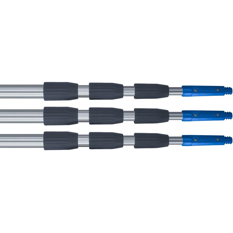 LEWI Teleskopická tyč 4x250cm Kvalitná hliníková teleskopická tyč nízkej váhy ideálna na čistenie, umývanie aj ďalšie práce vo výškach! Dvoj až štvorsekčná teleskopická tyč je zložená z vnútornej hladkej hliníkovej sekcie(í) a vonkajšej hliníkovej, proti preklzu pozdĺžne vrúbkovanej rúrky. Vnútorná sekcia má na spodnej časti segment, ktorý bráni pretáčaniu. Každá vonkajšia rúrka je voči rúrke vnútorná uzatváraná objímkou s jemným závitom, ktorá zaisťuje dokonalú blokáciu. Pri práci s teleskopom je teda možné vyvinúť silný tlak bez toho, aby došlo k nežiaducemu posunu pracovných pomôcok. Tyč je ukončená kónusom s čapom umožňujúcim pevné spojenie tyče a používané pracovné pomôcky. Výber tyče: Pri výbere tyče je treba brať do úvahy: Maximálny dosah (počítať tiež s tým, že človek drží tyč 120-160 cm nad zemou). Uhol pod ktorým budete pracovať a nástroje, ktoré budete používať (tlak aký budete na tyč potrebovať vyvinúť) Čím viac tlaku a čím horší uhol, tým horšia stabilita pri maximálnom vysunutí všetkých sekcií. Pri modelovej situácii komplikovaného čistenia do 4m výšky odporúčame teda skôr teleskop 3x2m, než 2x2m. Na klasické umývanie okien a stierkovanie do výšky 4m odporúčame teleskop 3x1,5m (presah 50cm). Teleskopy LEWI sú veľmi obľúbené medzi profesionálmi aj medzi hobby užívateľmi. Dôvod je jednoduchý. Výborná kvalita za bezkonkurenčnú cenu!