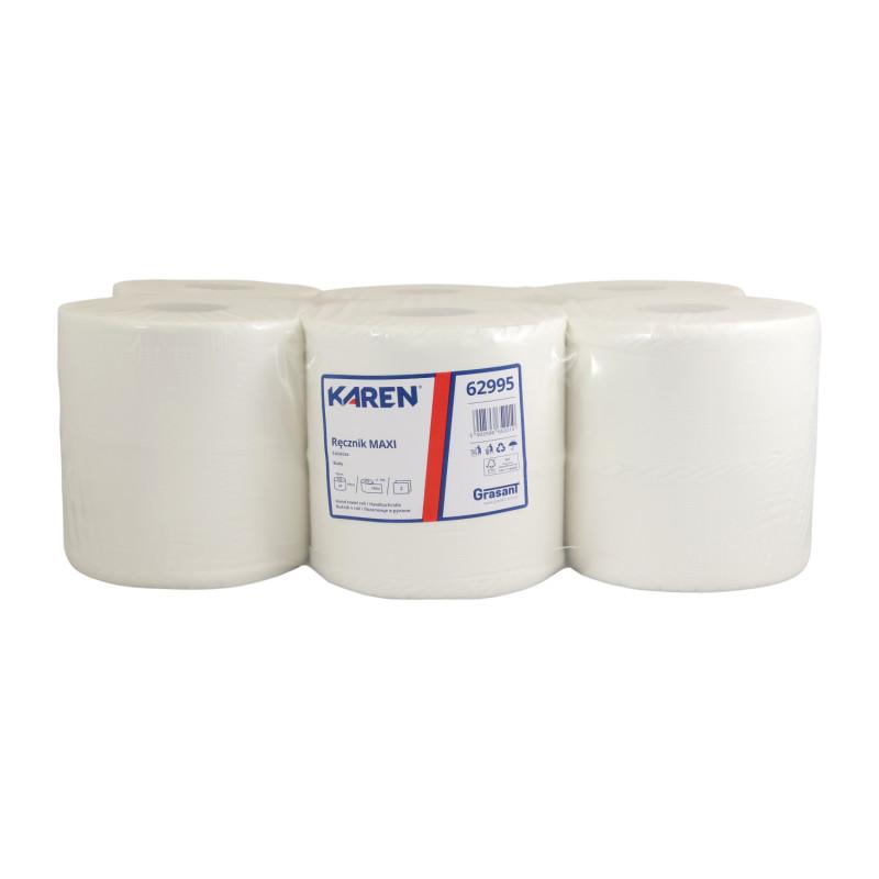 Papierová utierka MAXI 19cm, 2vrst.,150m perforácia 2 vrstvové Papierové utierky MAXI Ø 19 CM , návin 150 M, výška 19 CM 100 % celulóza. Bočné aj stredové odvíjanie. Stredové odvíjanie: po vybratí vnútornej dutinky Cena za balenie 6 ks