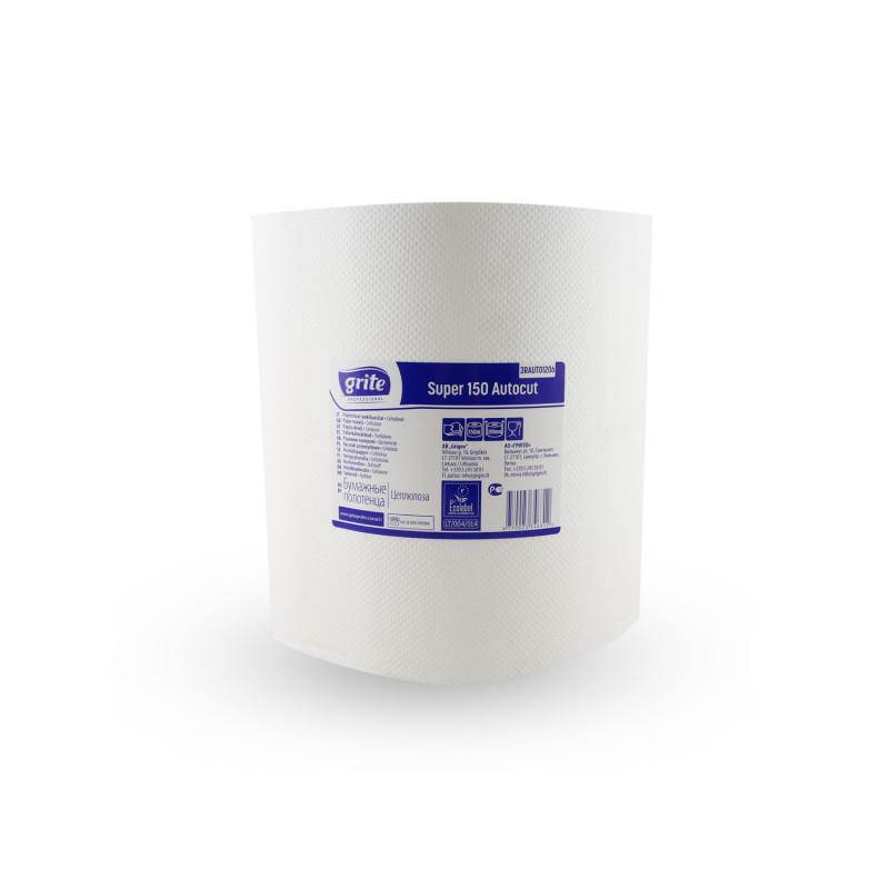 Papierová utierka MAXI AUTOCUT – Super 150 Autocut Dĺžka 150m, 200mm šírka, priemer 190mm, 2-vrstvá 100% celulóza, neperforovaná. Priemer dutinky 38mm Cena za balenie 6 roliek.
