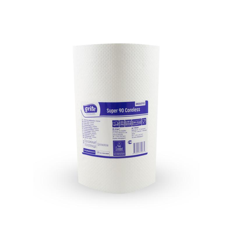 Papierová utierka MIDI – Super 90 Coreless Dĺžka 90m, 200mm šírka, priemer 130mm, 1-vrstvá 100% celulóza, rolka bez dutinky, vhodná pre stredové odvíjanie, perforovaná. Cena za balenie 12 roliek.