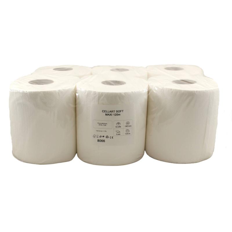Papierové utierky CELLART SOFT MAXI rolované PERFOROVANÉ s Ø 19 CM, 120 M 2 vrstvové Papierové utierky MAXI Ø 19 CM , návin 120 M, výška 19 CM 100 % celulóza. Bočné aj stredové odvíjanie. Stredové odvíjanie: po vybratí vnútornej dutinky Cena za balenie 6 ks