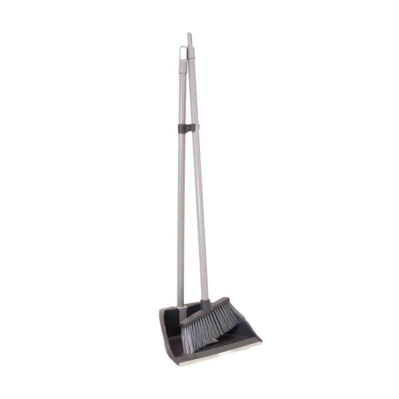 Plastová zmetáková súprava sklopná na tyči. Lopatku možno sklopiť k násade a postaviť pre lepšie skladovanie. Zametacia plocha metličky je 23 cm. Šírka lopatky 28 cm, hĺbka lopatky 20 cm. Dĺžka tyče 86 cm. Farba sivá.