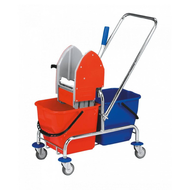 Upratovací vozík chrom. konštrukcia CLAROL 2 x 17l vedrá, žmýkací lis 1ks Profesionálny upratovací vozík chromovou konštrukciou na kolieskach s dvoma vedrami 17l a so žmýkačom. Robustná konštrukcia zaručuje dlhú životnosť. Vedrá so žmýkačom sú vyrobené z plastu. Sada má dlhšie vedenie pre ľahkú manipuláciu. Upratovací vozík Clarol 2 x 17 l je vhodný do stredných priestorov, menších obchodov, kancelárií a domov. Cena je za 1ks